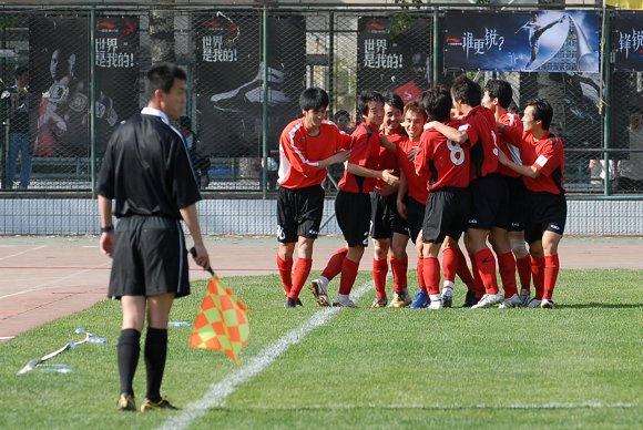 但僅過了7分鐘,延邊隊2號同樣由于危險動作,也被紅牌罰出場外。為此,延邊隊主教練還上來與邊裁發生了爭執,險些被罰出場外。接下來的比賽,雙方的失誤都明顯增多,火藥味也濃了起來。最后學生軍憑借頑強的精神,將1:1的比分保持到了終場,雙方握手言和。
