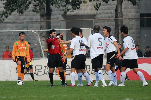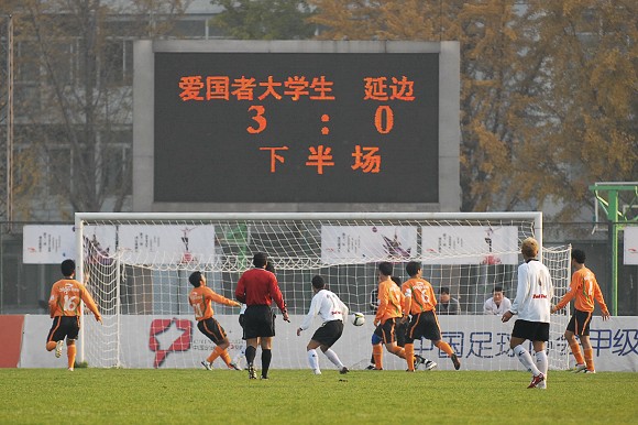 落后的延邊隊攻勢有所加強,但北理工的防守隊員并沒有給對方太多的機會。第33分鐘,延邊隊隊長韓松峰在禁區前一腳冷射稍稍偏出。1分鐘后,愛國者隊還以顏色,張淼在禁區前沿的遠射被對方后衛封堵,隨后楊思源接角球后的頭球攻門稍稍高出。