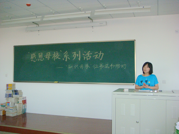 為了堅持全面協調可持續發展的基本要求,機電學院05級黨支部舉辦了“感恩母校”系列活動之“知識傳承”征書送書活動,將大四學生四年來所用的教材送給良鄉校區的同學。6月9日下午,在良鄉校區成功舉辦了交接儀式,機電學院07級輔導員徐瑩瑩老師,05級黨支部黨員以及07級的各班級干部參加了此次活動。