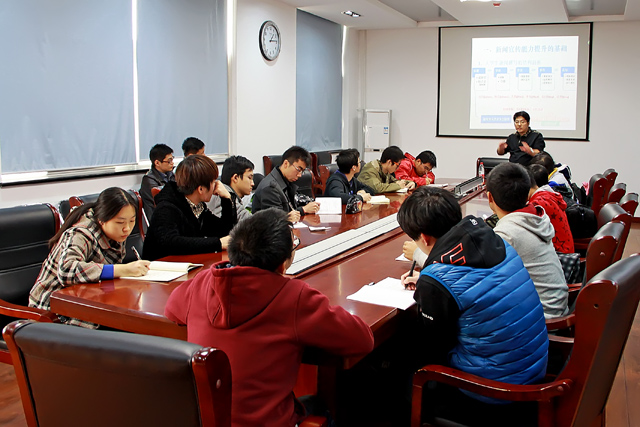 2013年11月14日中午,北京理工大學自動化學院在六號樓3樓會議室舉行了以“提升學生骨干宣傳工作和新聞寫作能力”為主題的培訓講座,講座邀請到了校黨委宣傳部副部長王征老師擔任主講,參加本次講座的有學院各學生組織負責人、學院新聞中心全體成員以及輔導員老師。