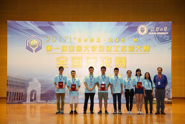 2017年8月16日,首屆全國大學生化工實驗大賽全國總決賽在天津大學落下帷幕。由北理工化學與化工學院鄧文生、康惠寶、劉文芳等老師指導的由化學工程與工藝專業2014級本科生王悅婧、張佳鈺和2015級梁悅同學組成的“悅·鈺”隊取得佳績,獲團體一等獎。