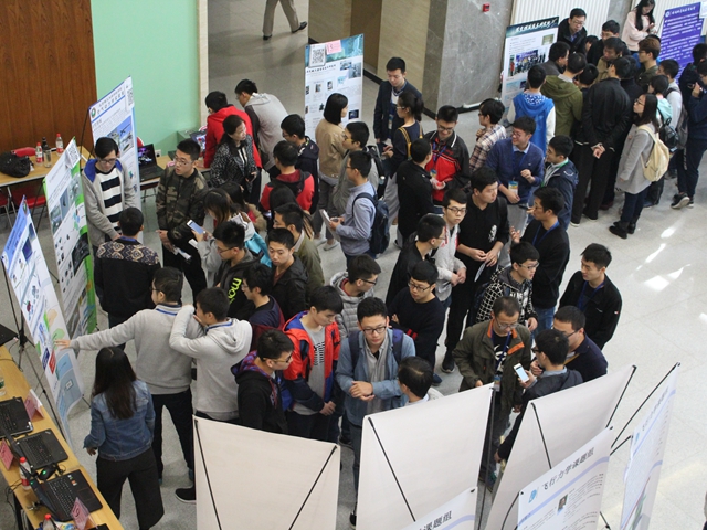 2017年10月21日上午,北理工中關村校區宇航大樓一層大廳里人頭攢動,熙熙攘攘,數十個來自宇航學院課題組的展位環繞了整個大廳。來自學院三、四年級的200余位本科生齊聚于此,或觀看海報、PPT和視頻,沉思于頗具震撼的研究成果中;或圍繞在展位旁,與來自課題組的導師和學長溝通感興趣研究方向?;顒蝇F場熱烈而有序,前來咨詢的同學絡繹不絕,圍繞學術興趣,本科生和課題組之間,充分交流,相互了解,宛如一場別開生面的學術“招聘會”。