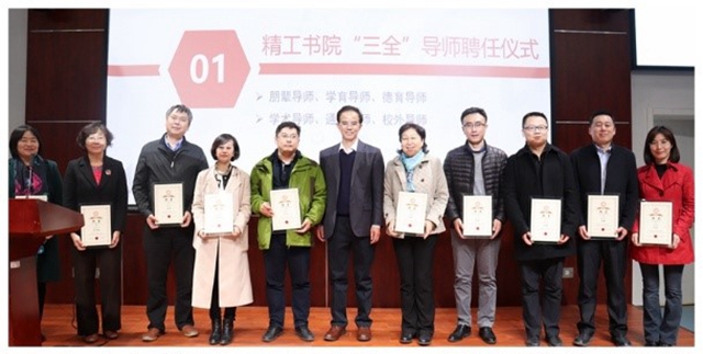 精工書院自成立之初,按照學校關于“三全”導師選聘工作要求,招募選拔高年級優秀本研學生組成朋輩導師團,組織“朋輩導師-社區班級”雙選會,開展各類朋輩教育引導;選聘專業教師擔任學育導師,舉辦“師言學語COFFEE TIME”等討論沙龍活動,開展思想引領、人文關懷、學業指導和學術引領等工作;德育導師由教務部、教學運行與考務中心、黨委宣傳部、校友會工作辦公室、前沿交叉科學研究院等部門處級干部擔任,對學生進行思想引導與發展指導;在對應專業學院中選聘知名學者擔任學術導師,面向學生開展專業引導與學涯規劃指導工作;聘請中文系教師及優秀校友分別擔任通識導師和校外導師,通過“精·思”大講堂等活動,開展通識教育與博雅教育,在學生中普及跨學科知識和思維方式,培育學生的人文情懷和科學精神。“三全”導師的配備,將有助于使精工書院學子在校園生活、學術發展、人生規劃等多層面、多角度獲得有力有效的教育引導,培養高素質、寬視野、強潛力、大胸懷的優良品質,實現自由而全面的發展。