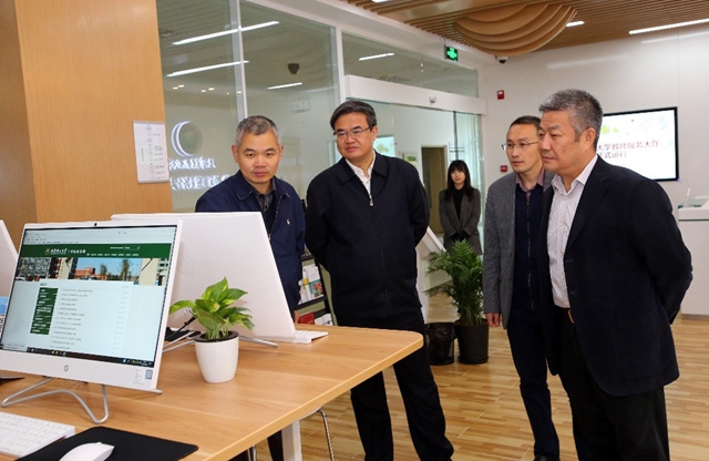 啟用儀式上,趙長祿、張軍現場視察教師服務大廳、窗口單位、自助服務設備等,深入了解各部門服務事項、服務時間、服務流程,并對大廳的建設和發展提出明確要求和期望。趙長祿強調,黨員領導干部和管理服務部門相關同志要不忘初心、牢記使命,踐行好“以師生為中心”的工作理念,加速推進服務事項線上辦理信息化建設,打造符合“雙一流” 建設目標的一流管理服務體系和運行機制,切實增強師生校園生活的幸福感和獲得感。張軍強調各部門要充分解放思想,破除業務壁壘,形成協同合力,充分運用信息化技術進行流程再造,滿足新時代廣大教職工對管理服務質效的新需求,以線上線下師生服務大廳為窗口,充分展示北理工一流服務形象。