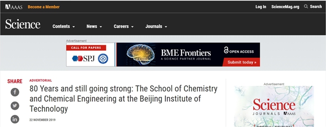 國際著名學術期刊《Science》報道北理工化學與化工學院發展建設