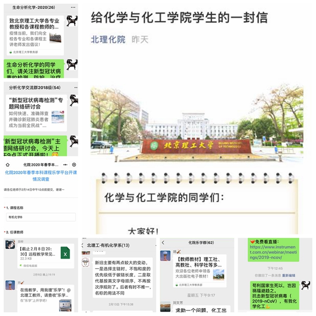 2月4日,學校發布了《關于推遲2020年春季學期開學時間的通知》,學院積極響應,根據學校疫情防控教學專項會議精神,成立以院長書記為組長、教學院長和學生工作副書記為副組長的“化學與化工學院教學質量保障組”,負責落實本學期的教學方案和教學過程的實施情況,確保疫情防控期間本科教學的順利進行與高質量教學效果。建立了學院樂學微信群,及時討論、學習樂學平臺線上課程的準備以及解決相應的問題,并在群里發布問卷星調查表,隨時掌握課程進度和問題;目前,學院除9門需要在實體實驗室進行的實踐類課程外,全部理論課程(共計29門)已經按照教學計劃在樂學平臺上建課,主講教師應用多種信息化資源,錄制帶音頻的PPT、使用MOOC、SPOC等網上優質教學資源,以多種教學模式結合來準備網絡授課;同時,在樂學平臺基礎上,各課程還建立課程微信群、慕課堂等,特別加強與學生互動,督促調動學生學習主動性。《給化學與化工學院學生的一封信》在開課前推送給所有學生,提醒學生主動參與網絡教學,齊心協力,完成現階段遠程教與學。