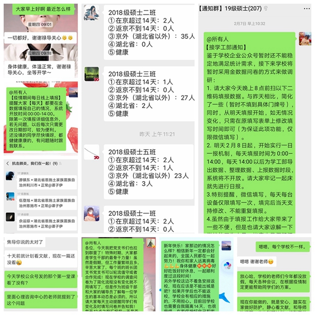 在學院黨委領導下,學生工作組迅速恢復工作狀態,通過微信公眾號、微信群等多種方式向學生傳達學校、學院的各項防控工作要求,普及官方防疫科學知識,確保學生知曉最新規定。
