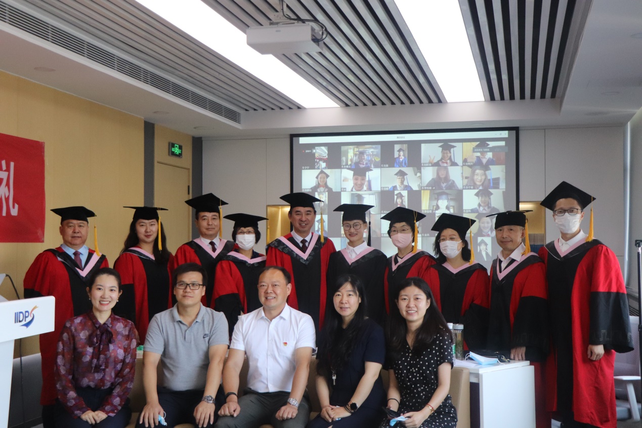 在學位授予環節,學院教授委員會副主席龔向前教授宣讀準予畢業暨學位授予學生名單。李壽平教授帶領導師們在云端與同學們進行合影留念,并在畢業生微信群里通過“拍一拍”為同學們云端撥穗。