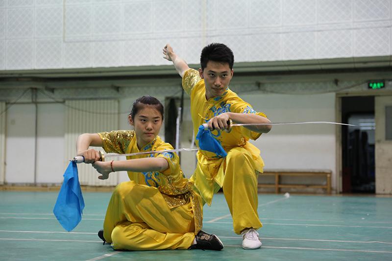 表演不同于比賽,所有成員的動(dòng)作要整齊劃一。每次排練,表演隊(duì)的同學(xué)們對(duì)每一個(gè)動(dòng)作都精雕細(xì)琢,一個(gè)掌型、一個(gè)亮相,甚至一個(gè)扎刀角度的確定都要反復(fù)琢磨。“這次表演的人數(shù)不多,所以我們希望能夠在動(dòng)作上吸引觀眾的眼球。”