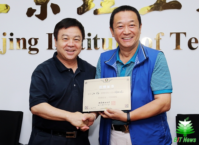 6月8日下午,北京理工大學在中關村校區二號樓233會議室舉行“大型天象儀”校園雕塑捐贈儀式。北京電影學院黨委書記、44771班校友侯光明,北京月壇大廈房地產開發有限公司董事長、43791班校友江榕,北京恩吉威機電科技發展有限公司總經理、43791班校友郭小燕,北京九城口岸軟件科技有限公司董事長、42811班校友王雙,北京波特優品經貿公司董事、44811班校友趙卉玲,中軟國際公司董事局主席、44811班校友陳宇紅,學校常務副校長、教育基金會理事長楊賓,黨委副書記、副校長、教育基金會副理事長、秘書長項昌樂,學校原黨委書記、教育基金會理事焦文俊以及相關單位代表出席捐贈儀式。