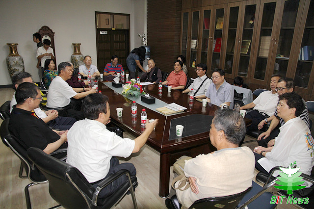 開幕儀式前,楊賓和校友進行了座談。校友踴躍發言,認為母校注重對學子知識的傳授與人格的培養,同時也重視發揮學生的藝術特長,讓他們在藝術的氛圍中成長。學校不僅能培養造坦克的工程師,還能培養出書畫家。校友們就理工院校發展書畫藝術專業,提出了個人的建議。寄語學弟學妹在扎實學習專業課程的同時,多培養一些藝術方面的興趣愛好,將受益終生。