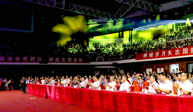“北理情 北理夢(mèng) 中國(guó)夢(mèng)”——慶祝北京理工大學(xué)建校75周年文藝匯演于9月19日3點(diǎn)30分在中關(guān)村校區(qū)體育館拉開(kāi)帷幕,學(xué)校黨委書(shū)記張煒、校長(zhǎng)胡海巖以及在校的其他校領(lǐng)導(dǎo)、部分老領(lǐng)導(dǎo)、各部門(mén)、各學(xué)院負(fù)責(zé)人、500余名85屆校友代表,2100余名返校校友及師生代表共同欣賞了本次文藝匯演。